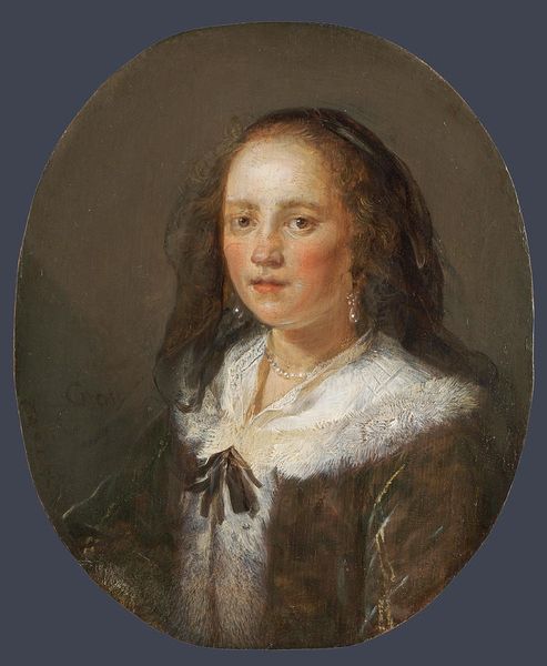 Curator: Up next is "Portrait of a girl (Maria Maxmiliana)," an oil painting from 1612 by Hans von Aachen. What strikes you about this work? Editor: There's an ethereal quality here, almost fragile. The soft light and muted colors give her a quiet innocence. It reminds me of early coming-of-age stories. Curator: Consider the layers of oil paint, the precise mixing of pigments to achieve that luminosity, the cost of the materials involved, and the patronage system that supported such endeavors. Who was able to afford art, to participate in its creation and consumption? This all becomes part of how the portrait works. Editor: Exactly. And looking at the subject herself—we see a young girl presented with delicate fabrics. This is hardly a simple representation, it’s about constructing and communicating privilege in early 17th-century society. How do you read this through a lens of social power and gender expectations? Curator: Indeed, the very act of painting, the labor involved in its production, underscores class and gender dynamics of the period. The artist's skill, the availability of paint and canvas, it all speaks to economic disparities and the power structures embedded in artistic production. What choices do we find evident in this construction of femininity? Editor: Her controlled gaze, the slightly pursed lips—it’s a constrained performance. Considering broader discussions around girlhood at the time—the pressures surrounding virtue, marriage, and lineage are almost palpable even at this age. And how often were girls, rather than boys, displayed this way? Curator: Good point. And in what ways can an awareness of the economic foundations of art challenge traditional ideas about artistic genius and the "masterpiece?" What happens when we see the portrait not only as an aesthetic object, but as a product of specific socio-economic conditions? Editor: Thinking about who had access to portraiture like this raises complex questions about representation and visibility even today. It serves as a constant reminder of past inequalities and power imbalances—especially for girls, women, and persons of color, in terms of having equitable space in today's art world. Curator: Exactly. These reflections challenge conventional historical narratives surrounding art, but they also offer crucial insights for examining gender dynamics in cultural production. Editor: Indeed, bringing history into the present to challenge systems that silence or marginalize other voices allows for deeper, much needed discussions.