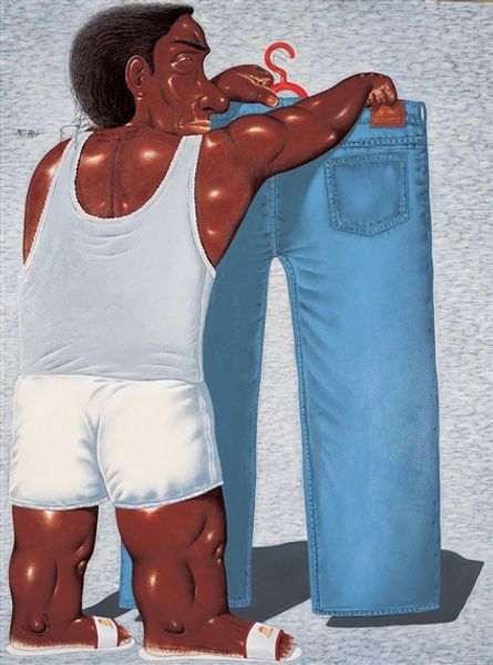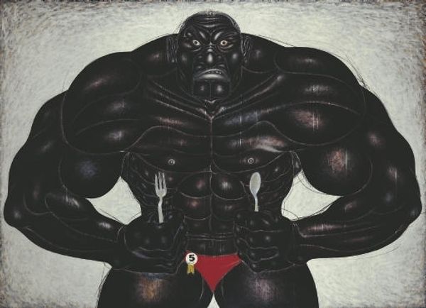 Nyoman Masriadi painted "I'm Still Lucky" using acrylic on canvas, a familiar combination within contemporary art. Yet, the painting’s intense figuration pulls the viewer in with a raw, immediate impact. Masriadi uses color to great effect, creating striking contrasts and cartoon-like figures. The dark skin tones of the figures are not merely aesthetic choices; they are integral to the work's commentary on race, power, and spectatorship. Look closely at the texture – the brushstrokes give the figures a sculpted, almost monumental quality. The layers of paint, applied with varying degrees of opacity, add depth and complexity to the scene. The dialogue bubbles, rendered in a direct, almost naive style, create a narrative element. Masriadi’s work, in its materiality and composition, challenges our notions of what constitutes “fine art” by integrating accessible, everyday materials with pressing social commentary.