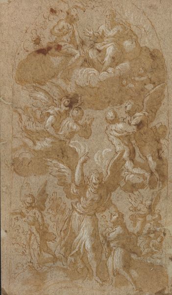 This drawing by Hans Speckaert depicts Minerva, the Roman goddess of wisdom and strategic warfare, standing among the muses, goddesses of the arts and sciences. Note Minerva's helmet and spear, symbols of her martial prowess, juxtaposed with her nurturing role over the muses. We see similar figures in other artworks, such as Pallas Athena, often depicted with similar attributes that evolve over time and geography. The motif of a goddess surrounded by muses has roots that go far back, appearing in classical Greek and Roman art, expressing an enduring human desire to find harmony between intellectual and creative pursuits. This is a potent image, engaging viewers on a subconscious level, evoking the universal aspiration to understand, create, and conquer. The image encapsulates a cyclical progression, resurfacing, evolving, and taking on new meanings as civilization grapples with the interplay between the rational and the creative.
