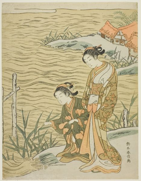 Torii Kiyomitsu created this woodblock print, “A Young Woman Watching Frogs,” in the mid-18th century. The process of making ukiyo-e prints was labor-intensive. The artist first created a design, which was then carved into woodblocks, one for each color. These were printed in succession, building up the image layer by layer. Look closely, and you’ll notice thin black outlines defining forms and patterns. The flat, bold colors and stylized forms are characteristic of ukiyo-e, a visual language developed for mass production and consumption. The print depicts a stylish woman pausing by a stream, perhaps considering the frogs. This scene draws on an earlier story, about a calligrapher who was inspired by a frog leaping towards a willow branch. It speaks to the beauty of the everyday world, and the capacity to learn from nature. This artwork prompts us to think about the many hands involved in its production, and the skilled work required to create what seems like a simple image. It reminds us that art is always a product of its time, shaped by the materials, technologies, and social contexts in which it is made.