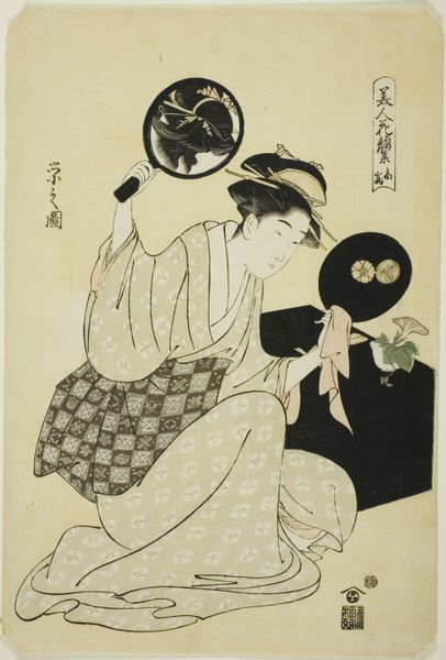 Utagawa Toyokuni I made this woodblock print of Yamatoya Iwai Hanshiro IV around the turn of the 19th century. Consider the nature of this object. It’s not painting; it's a print made from carved blocks. Woodblock printing demanded a division of labor: the artist who made the original design, the carver who translated that design into a series of blocks, and the printer who applied ink and pressed the paper to the block. The materiality of the wood gives the image its distinctive character. Notice the crispness of the lines, and the flat planes of color. These don't blend seamlessly; they sit next to each other with sharp definition. This reflects the hard-won skill of the carver. It is the craft that gives this print its enduring appeal. The process emphasizes clean, controlled execution, a reminder of the collaborative labor that went into its making. That interplay of art, craft, and social context is what makes this image so compelling.