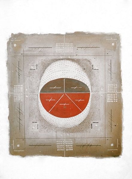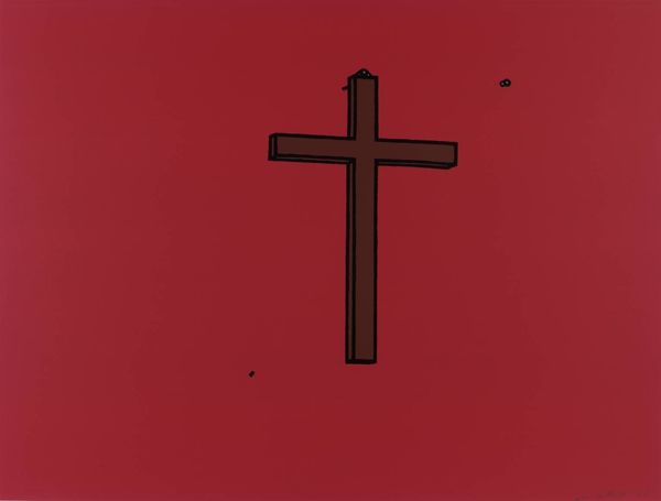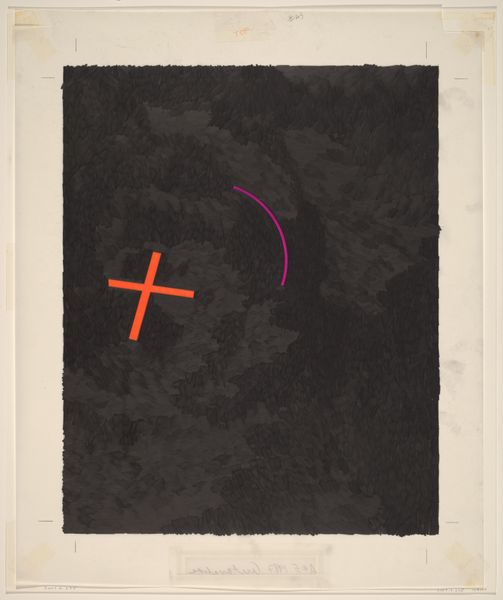 Stephen Antonakos made this untitled drawing, M#2-93, with some kind of marker on paper. There’s a ground of orange, with a cross shape floating in the middle. This orange ground, it's not a flat wash, it looks like many tiny strokes layered on top of each other, giving it this kind of vibrating energy. It’s a simple composition, but the handmade, repetitive mark making creates a lot of texture. You can see the way the marker drags and skips across the paper. The black cross sits on top of that orange, a strong contrast. Antonakos was really interested in simple geometric forms. He used them a lot in his neon sculptures. This feels like a study for something bigger, maybe a sculpture, a way of thinking through the possibilities of form and color, but also line and texture. It reminds me of Sol Lewitt, but maybe with more feeling. Ultimately, art is like a visual conversation across time, right?
