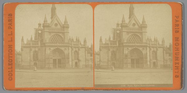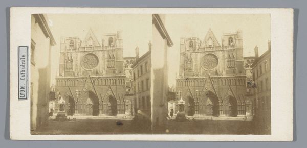 Curator: What a stillness captured here. It almost feels… sepulchral, yet majestic. The Nieuwe Kerk dominates the Dam Square in Amsterdam. This albumen print, dating from 1859, is the work of Pieter Oosterhuis. Editor: It certainly does have a muted quality, a quiet grandeur. The near monochrome palette lends it a sense of timelessness, despite being so clearly rooted in a specific moment. Curator: Right? It’s fascinating how Oosterhuis used the new medium of photography to document such an established scene. You have the very modern technique used to capture the eternal symbol of the church. Note the light, almost a ghostly glow, as if memory itself is imprinting the scene. Editor: Yes, there's a kind of stark realism in the architectural details, balanced with the slightly faded quality of the albumen print that softens the scene, almost rendering it like a dream. The way the building looms, it’s like Oosterhuis wasn't simply taking a snapshot, but constructing a powerful image. The Nieuwe Kerk takes on symbolic meaning: spiritual tradition dominating the landscape. Curator: Maybe even overshadowing it? It’s interesting that he doesn't really show the bustle you might expect from a city square. Instead, it's like he’s captured the soul of Amsterdam in stone. I like how those empty streets amplify this notion of an all seeing building watching a soul slowly leaving its earthly body Editor: Good point, he isn't presenting it as a hub of commerce, but a symbolic anchor. One might see the rigid geometric forms and precise composition as reflections of religious and social order and its structures of power and control that extend into our world. This is a potent piece in capturing cultural memory and conveying powerful meaning. Curator: And for me, looking at it now, that’s its real power – how something frozen in time can continue to provoke fresh interpretations and evoke such resonant moods. Editor: It does leave one contemplating how buildings speak across the ages. Fascinating, indeed.