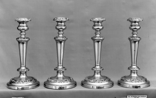 Editor: Right, next up, we have a pair of silver candlesticks, crafted sometime between 1773 and 1783 by Matthew Fenton and Co. I am drawn to how meticulously detailed each curve and face seems to be, and I was wondering what stands out to you most about this pair of rococo candlesticks? Curator: These candlesticks represent more than just illumination. Consider the silver itself: its extraction, the labor involved in its refinement, the craft of shaping it into these elegant forms. These were luxury goods. To possess these, one needed to command considerable resources, demonstrating a participation in specific networks of global trade and labor relations. Editor: So you are saying the material, the silver, has an impact that goes far beyond aesthetics? Curator: Exactly. Silver mining was an incredibly exploitative industry. These weren’t just beautiful objects; they represented wealth extracted through complex and often brutal means. Think about the division of labor inherent in their production too: from the miners to the designers, the silversmiths to the merchants, each playing a role in their creation and distribution. What sort of person would possess such a conspicuous item? Editor: So they reveal something about societal structure, perhaps a widening divide in wealth? Curator: Precisely! The Rococo style itself, with its ornamentation and excess, can be seen as reflecting the values of the aristocracy at the time. The means of production were often hidden from view, masking the true cost behind these objects. Considering all this encourages us to think critically about consumption and its impact. Editor: I hadn't considered the labor that went into creating something like this, or how reflective it is of class structure. I will have to view material objects more critically. Thanks for this insight. Curator: Absolutely. It is a valuable way of approaching decorative objects!