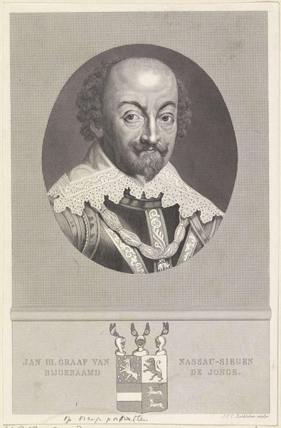 Editor: Here we have "Portret van Filips III van Croÿ, hertog van Aarschot," an oil painting presumed to have been created sometime between 1850 and 1930. What strikes me is how... austere the figure looks, almost imposing. How do you interpret this work? Curator: I see this as a portrait steeped in power and privilege. We must consider the sitter, a Duke, and his representation through the lens of societal hierarchies. Notice the elaborate armor, the lace collar—they're not merely decorative. They visually reinforce his status within a rigid class system, right? Editor: Yes, the clothing and gear really portray that status and power... Curator: Exactly! Now, let's think critically about the act of portraiture itself within that context. Who had the power to commission and control their own image? What messages were they trying to convey, and to whom? Considering this wasn't painted until much later, we have to see how history reflects in art! Editor: So it's not just a representation of a person, but also a statement about power and historical narrative. I suppose I didn't initially look that deeply into it. Curator: Absolutely. Consider how this portrait perpetuates certain ideals while possibly silencing others. Whose stories aren't being told here? And how can we challenge that imbalance when engaging with historical artworks today? Editor: This really makes me see how a painting like this can hold more stories, questions, and conversations. Curator: I’m so glad! Because reflecting on these things makes viewing a piece so much more profound.
