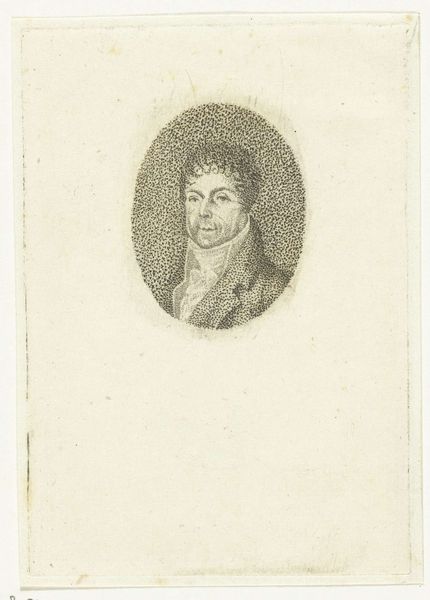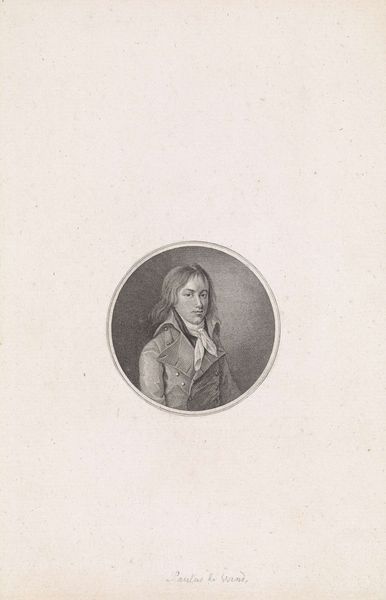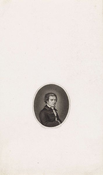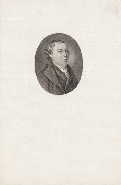 Editor: Here we have Noach van der (II) Meer’s "Portret van Bernardus Bosch," made between 1790 and 1792. It's an engraving. The first thing I notice is its circular frame, making it feel quite formal and almost like a miniature even at this size. How do you interpret this work through its historical context? Curator: That's a good starting point. We should consider the social function of portraiture at the time. This was during the rise of a powerful merchant class. Think about who was commissioning these portraits and why. These weren't royal portraits meant to convey divine right. Editor: So it’s about status, but a different kind of status than we see in earlier eras? A new kind of status that needs to be communicated and displayed? Curator: Precisely. These engravings, made into prints, facilitated wider dissemination. Consider the shift in power dynamics from the aristocracy to this burgeoning middle class. How does that impact artistic production? What purpose does art serve within these societal changes? Editor: It’s fascinating to think of art functioning almost like a business card, signaling one's place in this new social order. Curator: Exactly. And the clean lines, the understated elegance of the Neoclassical style… Do you see how that visually communicates ideas of reason, order, and perhaps even republican values valued by this new class? Editor: I do now! It's a far cry from the opulent displays of the aristocracy. I guess I was so focused on the portrait itself, I missed the broader picture of what it represented in society. Curator: Often the most interesting thing about art is understanding its role within its time, what purpose it served, what conversation it was a part of. Editor: I'll definitely keep that in mind moving forward. Thank you for shedding light on how socio-political forces influence artistic expression.