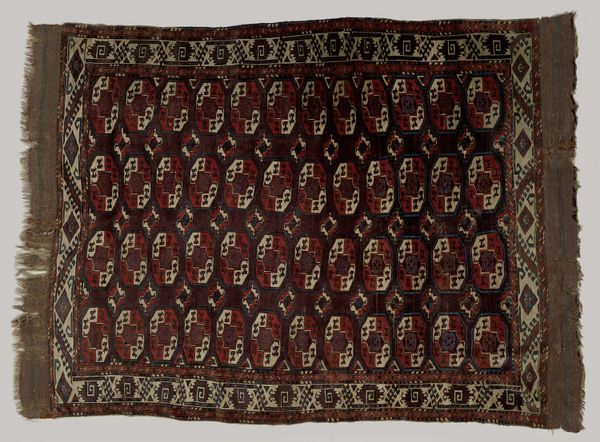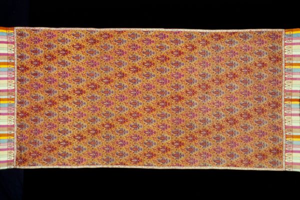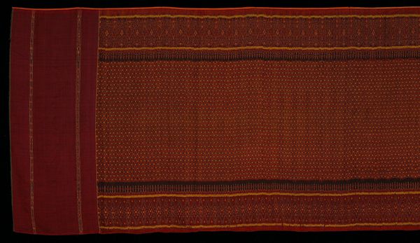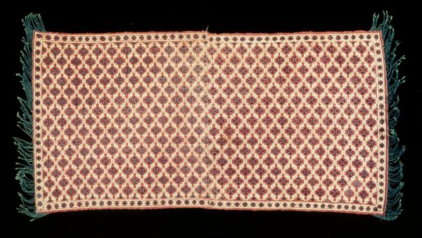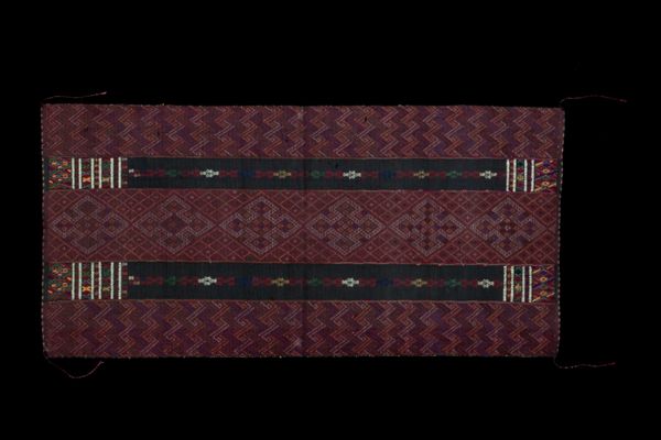 Curator: Here we have a Breast band, an intriguing textile work crafted around the 20th century by an anonymous artist, now residing here at the Minneapolis Institute of Art. It’s a fascinating piece, woven from materials like fibre art, silk, cotton, and other textiles. What captures your attention first about this piece? Editor: Immediately, it's the subtle, almost hushed palette, and that meticulously ordered geometric pattern. There's a subdued, reverent quality that I find so captivating. It almost feels like witnessing a carefully guarded secret, don't you think? Curator: I'm glad you noticed the geometric design because it hints at deeper meaning. Clothing in many cultures isn't merely functional—it communicates social status, identity, and belonging. This breast band, considering the geometric abstraction present throughout, likely held profound cultural or symbolic weight, perhaps indicating marital status, a rite of passage, or even spiritual affiliation. Editor: Absolutely, these textiles offer invaluable glimpses into gendered labor, social hierarchies, and identity construction. It makes me wonder about the anonymous hands that crafted this band and the experiences woven into each thread. Considering it’s called a “breast band,” what societal expectations of femininity and modesty were at play here? What specific body ideals might have been enforced by this garment? Curator: That's a very poignant perspective. It reminds us to critically consider whose bodies are being adorned and, perhaps more importantly, regulated through art. This "Breast band" acts as a powerful anchor point from which we can launch such explorations. Do you find any other personal narratives coming to mind? Editor: It's difficult not to ponder the tactile qualities; the feel of the silk, fibre art and cotton, the weight against the body. There’s an intimacy there that evokes thoughts of everyday existence: the feel of labor, of celebration. The ways cloth marks both mundane routines and pivotal moments. Curator: Absolutely. It reminds us how objects can quietly hold immense historical weight. Editor: It invites a meditation on adornment, identity, and untold stories.