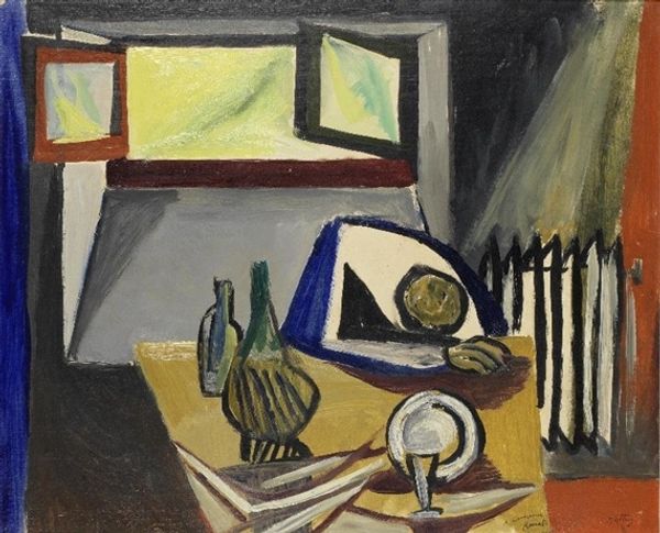 Pyotr Konchalovsky made 'Dry Paints' with oil on canvas, but when exactly, we don't know. Look at how the artist brings a real vibrancy to these everyday objects, building each form with juicy, visible brushstrokes. Konchalovsky isn't trying to hide the process; he wants you to see it, to revel in the materiality of the paint. Notice the thick impasto on the jars and bottles, almost sculptural. The way he handles color is striking. See how the blues in the background clash just so with the orange and yellow in the jars. There's a tension there, a playful dissonance. It's like he's saying, "I'm not going to let these colors just sit there; I'm going to make them sing." This reminds me of some of the still life paintings of Giorgio Morandi, who similarly found endless fascination in the quiet beauty of humble objects. Both artists teach us to see the world anew.