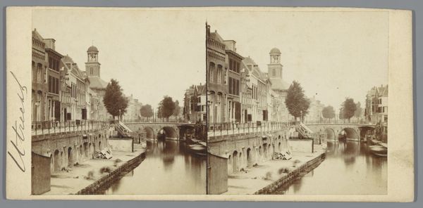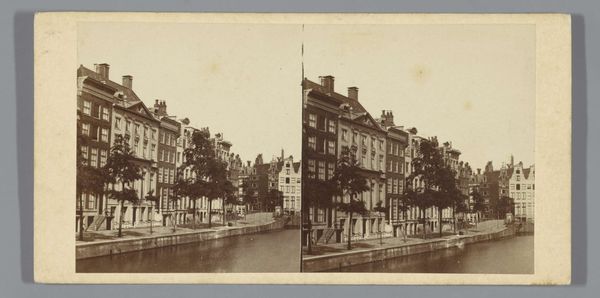 Pieter Oosterhuis captured "Gezicht op de Drift in Utrecht" in a stereoscopic albumen print, a popular medium for viewing depth in the 19th century. The image presents a calm canal scene in Utrecht, reflecting the order and prosperity valued by the Dutch middle class during this era. But this tranquility belies a period of significant social and political change. As industrialization progressed, class divisions became more pronounced, influencing artistic perspectives. Oosterhuis, as a photographer, occupied a unique position, both documenting and shaping perceptions of his environment. His choice to focus on serene urban landscapes rather than the gritty realities of industrial labor speaks to a desire for a particular kind of national identity. The canal, a symbol of Dutch ingenuity, also silently hints at the complex issues of water management and trade that defined the Netherlands. This photograph invites us to consider the narratives that are both visible and concealed in the depiction of everyday life.