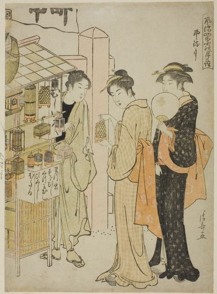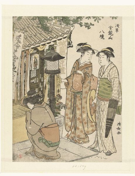 This woodblock print by Torii Kiyonaga depicts women visiting the Enmei Jizo Shrine, part of the Kinryuzan Temple in Asakusa. The Jizo, a bodhisattva who cares for the vulnerable, is here to offer protection for travelers and children. Note the lantern, reminiscent of ancient votive offerings, now electrified, casting its modern glow. Echoes of this symbolic light appear in countless forms across cultures, from the lamps of ancient Greece to Christian altar candles. They serve as a beacon of hope and guidance through the darkness. In this print, it illuminates not just the physical space but also the spiritual quest of the pilgrims. The act of visiting shrines is a timeless gesture, repeated across centuries, each time nuanced by the currents of contemporary life. These visual echoes remind us that culture is not linear, but cyclical, with symbols evolving and reappearing across time.