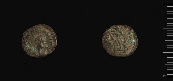 Editor: This is a Politikon of John V, its age unknown, residing here at the Harvard Art Museums. It looks like a humble, timeworn coin, a silent witness to bygone eras. What stories do you see etched into its surface? Curator: Ah, yes, a tiny portal to Byzantium! I see the wear of countless transactions, the ghost of a merchant's touch. It’s not just metal; it’s a tangible link to an empire's pulse, its economic lifeblood flowing through this small disc. Can you imagine what it might have bought? Editor: Maybe a loaf of bread, or a trinket at the market? I never thought about a coin being a time capsule. Curator: Exactly! And that, my friend, is where the magic lies. It makes you wonder about the dreams and daily struggles of people so long gone, doesn’t it? Editor: It really does. Thanks for the journey.
