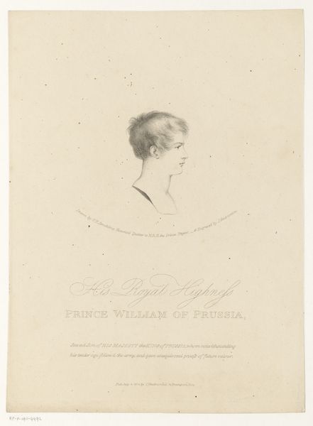 Curator: Looking at this print, I immediately notice the geometric precision in the framing of the portrait. Editor: Indeed. We’re observing an engraving by Johann Friedrich Bolt, dating from 1817. It’s a portrayal of Friedrich Wilhelm III of Prussia. Curator: The formal restraint is striking. The use of line and shadow is meticulously controlled to construct the image of the king. Do you feel this careful calibration communicates an era, a position? Editor: Undoubtedly. It's steeped in the aesthetic and the socio-political environment of the time. Depictions of power were intentionally presented through very particular filters. Wilhelm III’s reign saw Prussia's rise. How do you perceive the king within the frame? Curator: Stolid and powerful. His gaze is assured, yet something in the way it's printed suggests a controlled, almost hesitant resolve. The detailing in the uniform—each button, braid, and medal—conveys not merely status, but a weighty history. But its grayscale rendering mutes something essential... Editor: It speaks to the democratization of imagery during that period. Engravings enabled wider distribution, reinforcing his presence across Prussian society. Did this shape or respond to public perception? The role of printing in shaping narratives of leadership intrigues me. Curator: The portrait's impact stems from its balance of light and shadow, coupled with the clarity of the engraving lines to lend gravity to his position within society. These formal features create visual symbolism. Editor: Seeing this print in the museum now offers a layered view—considering not only the sitter and artist, but also the role of images in asserting national identity during this time. What remains with you most strongly from the viewing? Curator: I will be considering the visual mechanisms the artist deployed to solidify Friedrich Wilhelm III's role through such structured graphic choices. Editor: And for me, thinking through how these circulated images influenced governance itself opens new considerations about visual narratives.