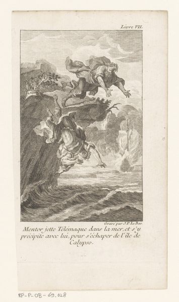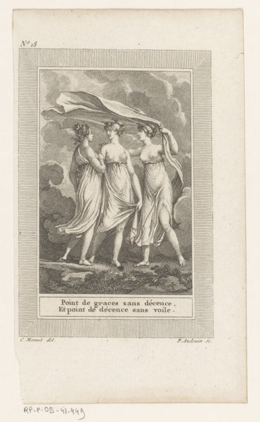 Editor: Here we have Pierre Audouin’s engraving, “Alkyone kijkt uit over zee,” made in 1801. The detail is exquisite, but the scene itself feels melancholy to me. What strikes you about this print? Curator: Oh, melancholy is spot on! It whispers of longing, doesn’t it? I get swept away imagining Alkyone gazing out at the endless sea. It’s like she’s eternally waiting, and perhaps slightly losing her mind because, let's be honest, staring at the horizon for centuries would drive anyone a bit bonkers. Notice the sharp lines. What does it evoke for you? Editor: The lines give it this intense feeling...like a tightly wound spring ready to burst. Also, it looks as though Audouin could have been familiar with Greek art. Curator: Exactly. Neoclassicism was having a serious moment, drawing inspiration from ancient Greece and Rome, this need to return to some perfect form, and a bit of control, perhaps, during less stable times. So, this wasn't just art; it was a cultural statement, a little visual poem filled with yearning. Editor: So it's both art and a snapshot of the times. Curator: Precisely! Art often is. Makes you wonder what we are expressing through our art, doesn't it? Editor: It certainly does. I am leaving with a deeper appreciation of the piece, beyond the mere visual elements. Thanks! Curator: My pleasure! May it bring joy... even with the touch of sadness!