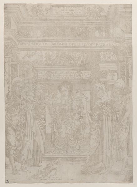 This tapestry, 'Paul Preaching at Philippi' from a set of Scenes from the Life of Saint Paul, was conceived by Raphael around 1515-1519. Its woven materiality invites touch, contrasting the lofty narrative with tactile intimacy. The composition is structured by a tension between the foreground's clustered figures and the background's receding landscape, framed by an ornamental border. Paul’s commanding figure anchors the right, his oration drawing the gaze across a semiotic field of gestures and expressions. The women, arranged in a frieze-like manner, embody varied responses to Paul’s message. Raphael employs the tapestry medium not merely to illustrate but to activate a dialogue between form and content. The weave's inherent grid imposes an order, yet the figures break free, destabilizing the surface. This tension embodies the disruption Paul’s teachings introduced into the established order. The tapestry becomes an active site where the threads of faith are interwoven, challenged, and ultimately transformed.