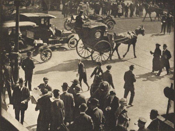 Editor: Willem Ganter's gelatin silver print, "Rijtoer door Rotterdam van Koningin Wilhelmina," made in 1899, depicts Queen Wilhelmina's procession. It feels like a meticulously staged tableau, brimming with people. As a history painting in photographic form, it suggests interesting things about the culture of photography. What's your take on how this image functions in its historical context? Curator: This image is particularly interesting when considering the political power of images at the turn of the century. Photography, then, was rapidly becoming a crucial tool for shaping public perception. Consider the carefully orchestrated scene: the Queen, elevated in her carriage, surrounded by symbols of state – horses, flags, military personnel – while the populace is assembled en masse. Editor: It really does come across as an orchestrated attempt at image management. Is the sheer number of people part of that intention? Curator: Absolutely! The density of the crowd emphasizes the Queen’s widespread support. Note how their gaze is directed towards the carriage. This photograph, likely commissioned or at least sanctioned by the royal house, aims to project an image of strength, stability, and connection to the people. Can you see hints of social class in the arrangement of figures here? Editor: Yes, now that you mention it, the figures closest to the carriage appear better dressed and more formally posed than the crowd further back. The photograph subtly reinforces the existing social hierarchy. I had never considered that photographs, particularly documentary ones, could also contain coded class messages. Curator: Precisely. Understanding the cultural and political role of photographs like this gives us insight into the complexities of image-making as a powerful tool in shaping collective memory and maintaining existing power structures. It allows us to question whose narrative is being presented. Editor: This image definitely provides insight into how photography participated in the politics of representation and constructing an image of nationhood at that time.