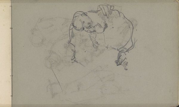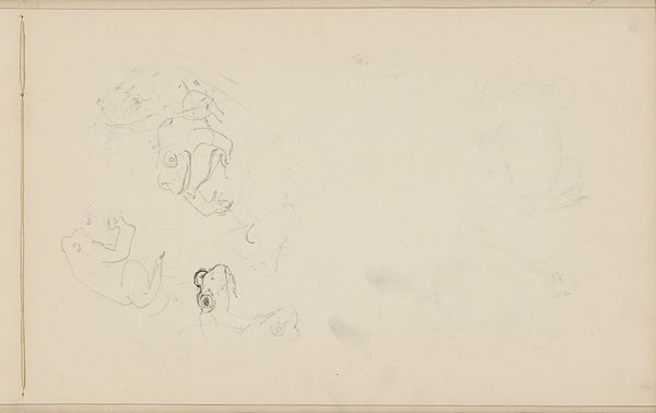 Curator: Breitner's "Studies van een Hond," sketched between 1880 and 1882, offers us a candid glimpse into the artist's process, rendered in pencil on paper. Editor: The drawing feels surprisingly vulnerable. It is like catching fleeting glimpses of something in the process of unfolding. Curator: I think that sense of fleeting movement is key. Breitner, deeply invested in Realism, sought to capture the dynamism of modern life, and these sketches epitomize that ambition even through their subject. Dogs, particularly in urban environments, often mirrored or embodied the realities of the poor. Editor: True, but observe how the lines form and reform; there is a visual echo. Perhaps these quick studies point back to the Egyptian Anubis or the Greek Cerberus; the canine guardian of liminal spaces between life and death, perhaps reflecting a transient, less visible population—linking the familiar domesticated pet to deeper narratives of displacement. Curator: That’s an interesting angle. We often read those classic archetypes as being deployed to justify inequalities in modern systems—particularly when animals are being used to symbolize class and ethnic differences, not necessarily the archetypes of power themselves. However, I agree with you about their transient aspect. Editor: Note how this sheet echoes sketches found within artists' journals since the Renaissance. Animals—particularly dogs—acted as surrogates, vessels of symbolic exploration when societal constraints prevented studies of human subjects in unguarded moments. Curator: Yes, there’s also a very simple affection on display. Not everything must be framed by socio-political realities; Breitner simply captured the beauty of the everyday—his work reveals how these elements combine to make meaning. Editor: Exactly. By allowing himself to examine all dimensions, he achieves depth. This casual pencil study is imbued with multiple facets. It gives us an authentic perspective on our relationship to the everyday symbols all around us.