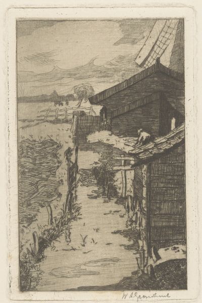 George Paul Tsutakawa made this woodblock print, Fisherman’s Wharf, and look at the way the whole thing is just carved out with such care, line by line, like he’s really feeling the weight of each cut. I’m drawn to the texture here. It's all about the push and pull between the black ink and the untouched paper. The parallel lines carving out the buildings feel almost claustrophobic, like the wharf is closing in on you, contrasting with the open sky in the background. Notice the way he renders the reflections in the water with these short, choppy lines. It makes the water feel almost solid, mirroring the heavy, grounded structures around it. The shadows are deep, almost ominous. It makes the whole scene feel like it exists in a perpetual twilight. This piece reminds me of the German Expressionist woodcuts, like those by Kirchner, where the medium itself becomes a way to express anxiety and alienation. It's not just a picture of a wharf; it’s about the feelings it evokes.