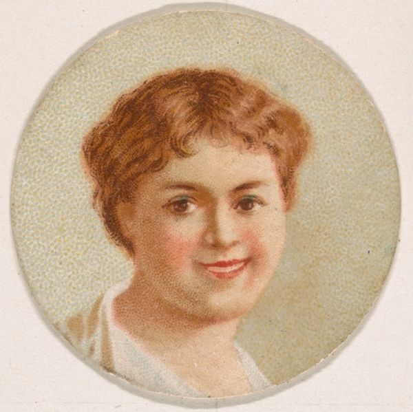Editor: So, this is "Portrait of woman, from the Novelties series (N228, Type 1) issued by Kinney Bros.," made around 1889. It’s a drawing, a print... and it was actually a tobacco card! It has an impressionistic style and, well, looks like a sweet portrait. What can you tell us about this artwork? Curator: The interesting aspect here isn't so much the portrait itself, but that it originated as a promotional insert in Kinney Brothers tobacco products. The materials and processes speak volumes. These cards weren't intended as high art but were mass-produced items distributed to encourage consumption. How does knowing it was intended for marketing affect your interpretation? Editor: Well, I see it differently now! It’s not *just* a portrait. The meaning changes completely once you realize it was used to sell tobacco. But does that cheapen it as a piece of art? Curator: Cheapen? No. It recontextualizes it. Think about the labour involved, the printing technologies, and the social dynamics of tobacco consumption in the late 19th century. The woman’s idealized image served as a marketing tool. We're not just looking at an aesthetic object, but a material artifact deeply embedded in a network of production and consumption. The print becomes a record. Editor: So, this idealized woman... was she meant to make people buy more tobacco? I guess I hadn't really considered the socio-economic forces at play here! It's like looking at art as material culture. Curator: Precisely. We are prompted to consider both labour, materiality, and ultimately, consumption. And those questions reveal far more about the piece and era it was made than traditional art history would illuminate. Editor: I’ll definitely look at things differently going forward. It really shifts how I perceive its purpose, not just its beauty. Curator: Indeed. By considering these factors, we expand the boundaries of art and understanding the piece and world it inhabited.