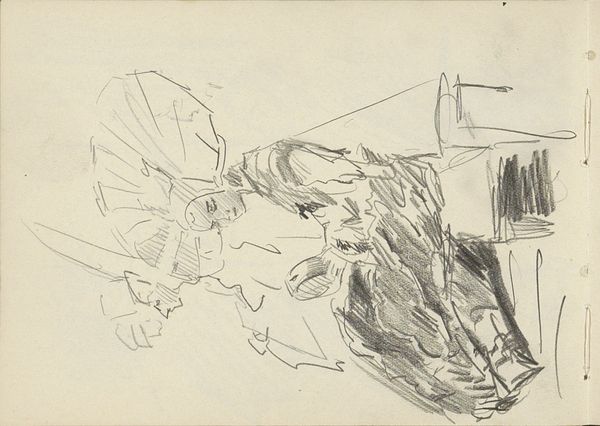 Isaac Israels made this sketch of figures on a terrace, likely in pencil, capturing a fleeting moment. The marks are immediate, a process of quick notations and observations. Look at how Israels uses dense, scribbled lines to suggest form and shadow, it's almost sculptural. You can see the physicality of the medium – the way the pencil drags and catches on the paper, leaving a trail of graphite. Notice the open, gestural lines that define the figures. They are not precise, but they convey a sense of presence, like the essence of a thing seen in a glance. The energy of the marks is contagious, like the visual equivalent of a quick conversation. Israels captures the light and atmosphere of the terrace. It reminds me of Manet's quick sketches, capturing a moment in time with a sense of immediacy and spontaneity. It's a reminder that art is an ongoing conversation, a way of seeing and experiencing the world that embraces ambiguity and multiple interpretations.