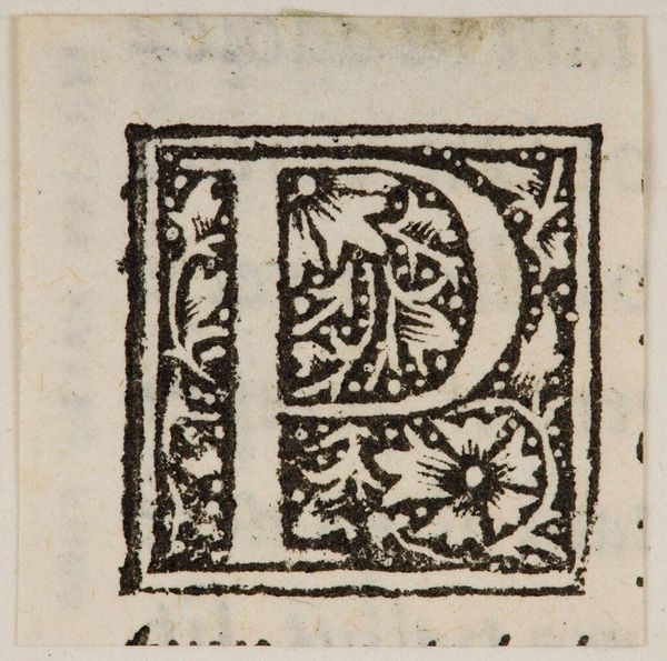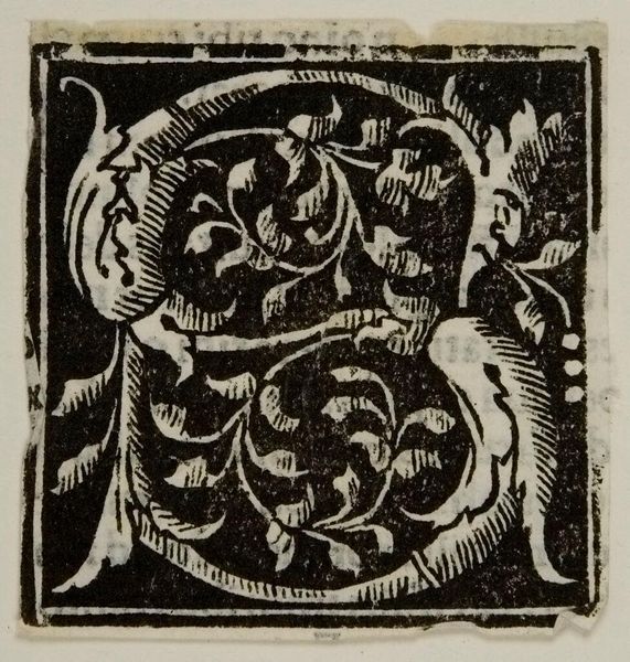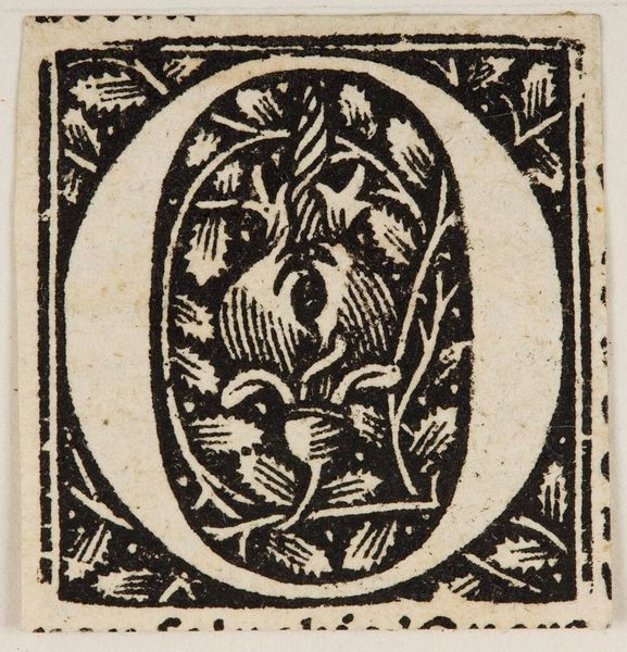 Curator: Let's examine "Initial D," an anonymous woodcut at the Harvard Art Museums. The image presents a letter 'D' densely filled with organic, intertwined forms. Editor: I find the stark contrast between the black ink and bare paper quite striking. It's a miniature world teeming with textural intensity. Curator: Indeed, the composition highlights a dynamic interplay between positive and negative space. The 'D' acts as a structured boundary for chaotic, natural elements. Editor: Considering its medium, I wonder about the skill of the craftsman. The level of detail achieved through wood carving speaks volumes about the dedication to labor. Curator: Precisely. One must consider how the material conditions of production, such as block carving, influence the aesthetic outcome. Editor: It's a fascinating object that encapsulates both meticulous design and tangible craft. The piece invites reflection on how form and process intertwine. Curator: I agree; it pushes us to consider the intrinsic beauty and labor that went into its creation.