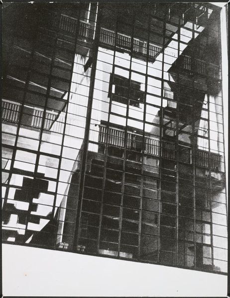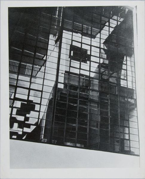 Editor: So, this is T. Lux Feininger's photograph of the Bauhaus Building in Dessau, taken between 1925 and 1926. I’m really struck by the geometric starkness of the facade. What do you see in it? Curator: Well, the Bauhaus was all about 'art into industry,' right? And here Feininger really captures that with a fresh eye. Look at the way the light bounces off those glass panels, like a musical score made of light. Doesn't it almost sing? Editor: It does have a certain rhythm. I hadn't thought of it like music. Curator: These artists were trying to create a whole new world. They believed that design could literally rebuild society. Isn’t that a beautiful thought? Editor: Absolutely. It's fascinating to see that vision captured in a single frame. Curator: Indeed, it's a testament to the Bauhaus spirit, alive and well in a photograph.