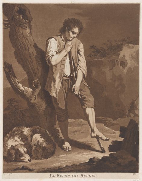 Editor: So, here we have Joshua Reynolds's "Colonel Acland and Lord Sydney: The Archers" from 1769, crafted in oil paint. It's a striking image; there's an almost theatrical quality to it. How do you see this work? Curator: What grabs me is Reynolds’ conscious manipulation of materials and process. Look at the fluidity of the brushstrokes, especially in the background foliage. It mimics nature, yet simultaneously exposes the artist's hand, drawing attention to the labor involved in constructing the image. It really forces the viewer to reconcile nature, nobility and hard labour. Editor: So, you are referring to both literal physical labour, of the artist making the artwork but also the kind of cultural labour that is inherent to such depiction of class and identity? Curator: Exactly. Consider also how the oil paint, a relatively new medium at the time, allowed for this level of detail and manipulation. The choice of materials isn't neutral. How does the medium itself help define and possibly limit the statement of this piece? What can be observed? Editor: The glossy finish and richness probably helped idealize the subjects, adding to their stature. I wonder, what about the relationship between the men’s activities in the landscape? Are we to assume that hunting, as presented here, has anything to do with food provision, with labouring the land and feeding community? Or has that element of life been discarded completely? Curator: Precisely! We see a romanticised view of the landed gentry engaging with the natural world. This idealized, even performative hunting scene hides the very real labor relations that sustained their lifestyle. The painting then becomes less about sport and more about the display of wealth and power through manipulated depictions. Editor: So, what I take from that is this artwork shows a constructed image, that the materials and artistic processes shape a narrative not of truthful reporting but rather, one of subtle propaganda. Curator: Indeed. Reynolds brilliantly used material means to not just paint a picture, but to project a carefully curated vision of British aristocracy. And how different could this be had the artwork been fashioned, let's say, from embroidery or tapestry - the materials and skillset commonly associated with 'female labour' - as opposed to oil paint, a masculine 'high-art' material. Editor: Thanks! That's given me a lot to think about in terms of the labour that went into its creation and its societal underpinnings.