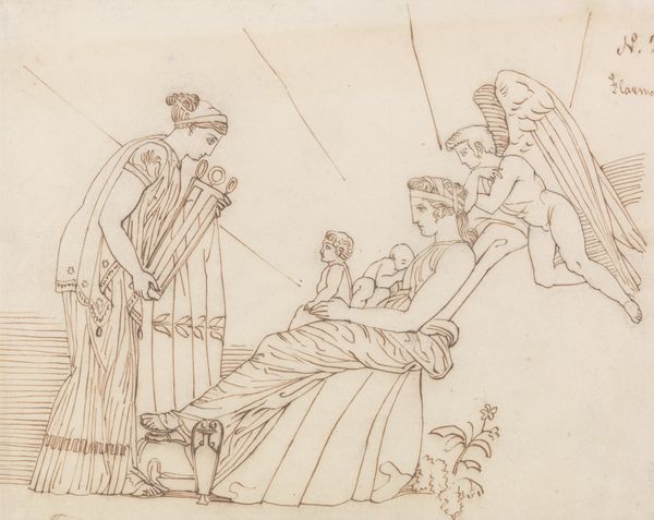 Carel Adolph Lion Cachet created this design for an advertisement with graphite on paper. The composition shows three figures arranged vertically, with an angelic figure dominating the central space. Her outstretched hands and wings create a protective space for the man and mother-with-child below. The linear quality of the design—visible in the fine outlines and lack of shading—gives the work a graphic, illustrative feel. The figures are stylized, their forms simplified to convey essential characteristics rather than realistic detail. The image is structured around a visual hierarchy, with the winged figure positioned at the top. This design uses classical allegories to communicate modern financial concepts. The angelic figure symbolizes security, while the man and woman likely represent labor and family, thus framing insurance as a virtue. It’s a fascinating interplay between traditional artistic language and emergent commercial culture, reflecting a society in transition.