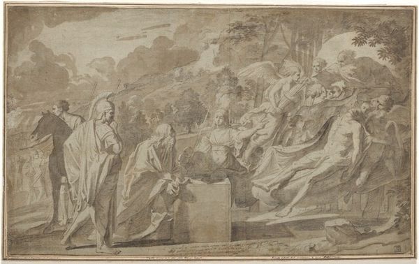 Nicolas Poussin rendered this drawing of the birth of Adonis from Myrrha, transformed into a tree, using pen and wash. Note the clear visual language of metamorphosis and rebirth, central to the tale of Adonis. Myrrha’s arboreal transformation is not merely a plot device, but a profound symbol. The tree, rooted yet reaching, embodies both death and generative potential, mirroring the cyclical nature of life. This motif echoes across cultures; consider the Tree of Life, a recurring symbol linking heaven, earth, and the underworld. The image of a tree giving birth touches deep, collective memories of nature's power. Just as Daphne metamorphosed into a laurel to evade Apollo, becoming an eternal symbol of resistance and transformation. In each telling, the motif retains its primal force, evolving yet echoing across the ages, tapping into our subconscious understanding of nature's ability to both conceal and reveal.