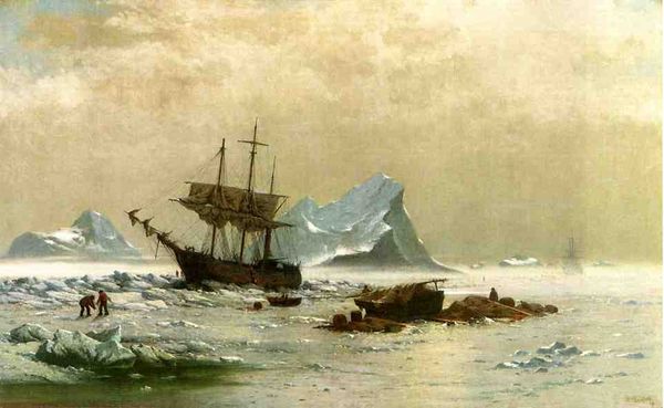 William Bradford painted this scene of whaling ships among icebergs in the Arctic Ocean, likely in the late 19th century. It's a dramatic depiction of man versus nature, but it also speaks to the economic and social forces driving exploration and exploitation of the Arctic. We see the ships returning from a whaling expedition. Whale oil was crucial for lighting and lubrication during this period, so these voyages had a significant economic impact, although they also decimated whale populations and disrupted indigenous communities. Bradford made several journeys to the Arctic and his paintings often reflect a romantic vision of this wilderness. But they also prompt us to consider the complex relationship between exploration, commerce, and environmental impact. Historical research into whaling records, ship logs, and accounts from indigenous peoples can provide a fuller understanding of the social and environmental context in which this painting was made. By considering these factors, we can view the artwork as a product of its time, reflecting both the ambitions and the consequences of human activity.