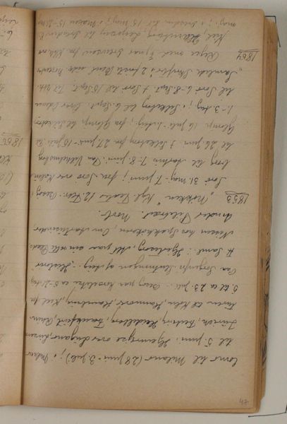 This page filled with handwriting was made by Niels Larsen Stevns, sometime between 1875 and 1941. It’s a pale, unassuming surface covered with tightly packed text, almost vibrating with the energy of thought and documentation. The ink looks light, maybe sepia or a faded brown, creating a soft contrast with the paper. The handwriting is dense, full of abbreviations and dates, a real archive of a life. I’m drawn to the way the script varies in pressure and form – sometimes hurried, sometimes deliberate, like a seismograph recording the tremors of daily life. There's something intimate about seeing someone's own record, their own way of capturing time. It reminds me of On Kawara's date paintings or Cy Twombly's scrawls, but with a biographical twist. The piece isn’t about perfect lines or forms; it’s about the messy, imperfect act of living and remembering. It’s a reminder that art doesn’t always need to be grand or polished; it can be intimate, personal, and raw.