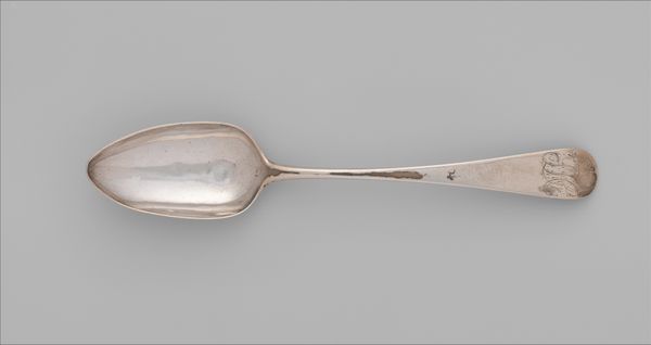 This silver tablespoon was crafted by Benjamin Halsted in New York, sometime in the late 18th century. Halsted was a silversmith working in a bustling city marked by the complex intersections of wealth, labor, and identity in colonial America. Consider the lives intertwined in this single object: the silversmith, likely a man of some standing in the community, and the laborers, including enslaved people, who mined and processed the silver. The spoon bears an engraved monogram, signaling ownership and status. This seemingly simple utensil speaks volumes about the era's social stratification, where access to finely crafted goods was a marker of privilege. Imagine holding this spoon, feeling its weight, and knowing it once touched the lips of someone whose life was vastly different from those who made its creation possible. It’s a poignant reminder of the distances, both social and material, that underpin our history.