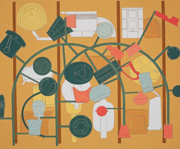 Alfio Giuffrida’s 'Spiegel' is like stumbling into a dream logic world made up of everyday objects. There is a real joy in the simple colour palette and the way Giuffrida approaches the surface of the canvas; it's all about the layering and building up of forms. You can see that Giuffrida is really thinking through the relationship between each of the objects he is portraying. The objects are rendered in flat colours, which creates a disorientating and slightly unreal feeling. Giuffrida isn't trying to trick us into thinking these are real objects, more that they are stand-ins for thoughts or memories. Take, for example, the way he renders the handles of each "mirror," these are so flat and solid, so certain of themselves! I am reminded a little bit of Giorgio Morandi, but if he'd had a much weirder junk drawer. Ultimately, it's this openness to playful interpretation that makes Giuffrida's work so rewarding.