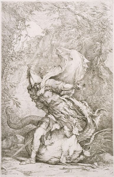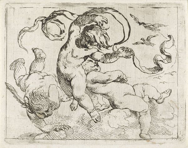Editor: Here we have Orest Kiprensky's "Faun with a Pipe," a pencil drawing from 1820. I'm immediately struck by the powerful, almost defiant pose of the faun, especially considering it's 'just' a sketch. What's your read on this piece? Curator: It's tempting to view it through the lens of Romanticism. There was a fascination with classical mythology and the nude form as signifiers of natural, pre-social states. Kiprensky, influenced by the political turbulence and evolving societal norms of his time, potentially used the faun—a creature existing outside of structured society—as a subtle commentary. Where do you see societal norms reflected or subverted here? Editor: I suppose the emphasis on raw physicality feels like a deliberate move away from the more idealized and restrained depictions of the body we might see in Neoclassical art. Almost a rejection of those traditions. Curator: Precisely! And think about the role of the institution exhibiting this work. Does a museum’s display of a nude form automatically imbue it with a sense of cultural legitimacy, or does it also retain a sense of otherness? Editor: It's a complex relationship. Showing it validates it, but perhaps also sanitizes some of the inherent wildness? Curator: A perceptive observation! Kiprensky might have been exploring the boundaries of acceptable imagery and the public's relationship with art and ideas around nature itself. Editor: I see it differently now – the drawing not just as an exercise in form, but as a loaded cultural statement. Curator: Exactly. By examining the social forces at play, we begin to understand the deeper meanings encoded in the faun’s rough form. A great reminder that art is never created in a vacuum!
