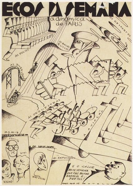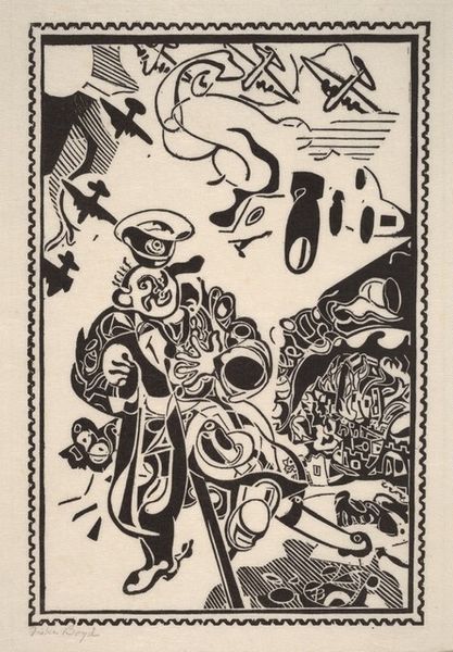 Helen West Heller made this print, Physics-Biology, likely in the first half of the 20th century. The whole image buzzes with energy, doesn't it? It’s all done in black and white, and that contrast really makes each shape pop. You can almost feel the artist carving away at the block, making all these tiny marks, and the whole image is built from these deliberate actions. Look at how the light seems to glimmer on the microscope, or the texture on the horse skeleton. Everything is so carefully planned and executed, yet there's something almost chaotic about the arrangement. Like she is exploring all the building blocks of life at once. It reminds me of the way Picasso was piecing together fragmented images in his Cubist paintings. Heller is making a collage of ideas, inviting us to make connections and find new ways of seeing the world.