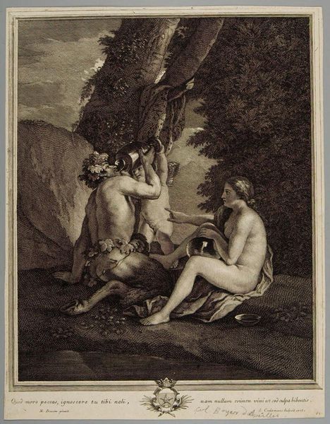 Editor: Johann Sadeler I created this print, Magdalen Penitent, sometime between 1550 and 1601. The figure is compelling, but the landscape seems to dominate the composition. What do you make of the relationship between figure and setting? Curator: The interplay between the figure and the setting establishes a profound visual dichotomy. Observe how the stark linearity of the rocks contrasts with the curves in the Magdalen's body. Editor: I see that now; it emphasizes her humanity. Curator: Precisely. Note the artist's use of light and shadow to articulate form, guiding the viewer's eye and creating a symbolic language. The skull at her feet, for instance, signals mortality. The whole composition invites us to reflect on the structural elements employed to convey meaning. Editor: This close reading really illuminates the artist's choices. Curator: Indeed. By examining these formal aspects, we gain a deeper understanding of the artist's intention and the artwork's intrinsic value.