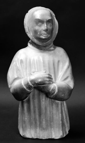 Editor: Here we have "Figure of Praying Samuel," crafted between 1852 and 1858 by the United States Pottery Company. It's an earthenware sculpture, small and, in a way, quite charming. What strikes me is the...almost mass-produced quality of it. What are your thoughts? Curator: That perceived "mass-produced quality" is precisely where I’d like to focus. Consider the economic and social context. During this period, there was growing tension between handcrafted goods and industrially produced items. A piece like this, made from earthenware, a relatively inexpensive material, was likely marketed to a rising middle class. Editor: So, you’re suggesting it reflects a shift in how people acquired art, moving from exclusive patronage to broader consumption? Curator: Exactly. Think about the labor involved. Earthenware is more easily molded than carved, allowing for quicker reproduction. This wasn’t about individual artistry in the traditional sense but rather the systematization of production. Is it art or commodity? A devotional object, or a symbol of aspiration to social standing? What impact do you imagine the advent of molded forms like this had on craftspeople reliant on carving techniques, who might see this object as representative of their looming economic displacement? Editor: That’s a powerful perspective. It completely shifts how I see it, less as a quaint object of piety and more as an artifact of industrial change. It embodies those tensions... Curator: Precisely! We are witnessing a change in modes of production and the ways in which devotional icons were produced and consumed. Editor: This makes me think about how even seemingly simple objects can tell us so much about shifts in production, labour, and consumer culture. Curator: Indeed, seeing art through a material lens really opens it up.