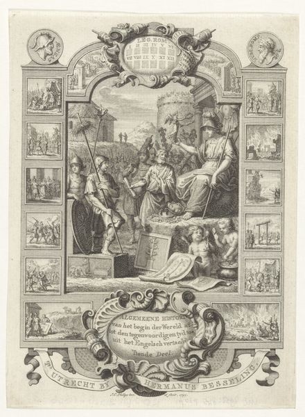 This engraving, made by Jan Caspar Philips around the mid-18th century, allegorizes the end of the Roman Empire, and it's full of commentary on the social structures of its time. Philips, working in the Dutch Republic, uses visual codes to create meaning. The crumbling architecture and chaotic scenes signify decay and disorder, a critique of the empire's decline. The inclusion of figures representing virtues and emperors invites reflection on leadership and governance. Made during the Enlightenment, a period of questioning traditional authority, the print resonates with contemporary concerns about political power and social order. To understand this image better, we can delve into the history of the Dutch Republic. Researching the political and economic conditions of 18th-century Netherlands would provide insight into the context in which Philips created his critique. Further, analyzing the representation of power and virtue in contemporary prints could reveal the artist’s own position within ongoing debates about the public role of art.