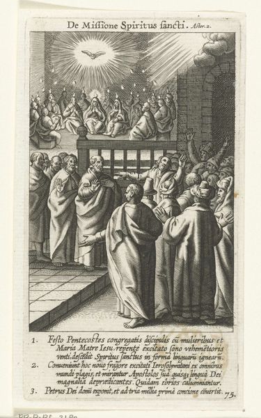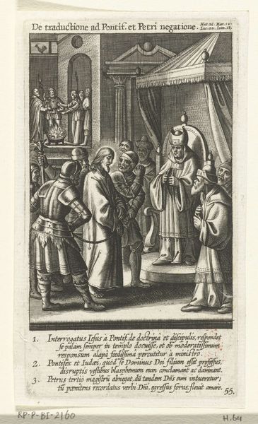 This is "Ecce Homo," an engraving by Boëtius Adamsz. Bolswert, housed in the Rijksmuseum. The composition is striking, split horizontally between the raised platform and the crowd below, creating a clear division of space and power. Notice how Bolswert uses line and form to emphasize the emotional tension. The figures are tightly packed, their gestures and expressions rendered with sharp, precise lines that convey a sense of drama. The use of light and shadow, or chiaroscuro, adds depth, heightening the contrast between the figures and their setting. Consider how the formal elements invite us to interpret the work through a semiotic lens. The visual structure, dividing the judged from the accusers, embodies a power dynamic that speaks to broader cultural narratives of justice and sacrifice. It's in these formal choices that we see how Bolswert's work functions as part of a larger discourse, inviting ongoing interpretation and debate.