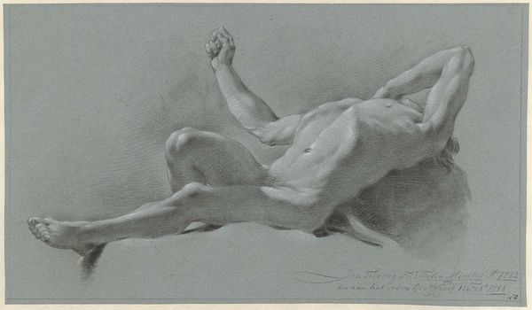 Jean Grandjean made this chalk drawing of a reclining male nude during the late 18th century. His artistic life occurred during a time when the aesthetics of the body were central to artistic expression. Here, the male body is presented in a way that deviates from the period’s traditional representations. The figure is positioned so we don't see the face, which shifts the focus from identity to form, and suggests a narrative beyond conventional portraiture. The vulnerability of the pose invites introspection. How does the absence of a visible face affect our emotional response to the artwork? This piece prompts a closer examination of art's role in shaping cultural ideals and individual experiences. It encourages us to think about how we connect with images and the stories they convey.