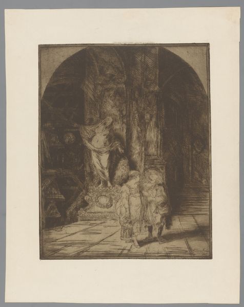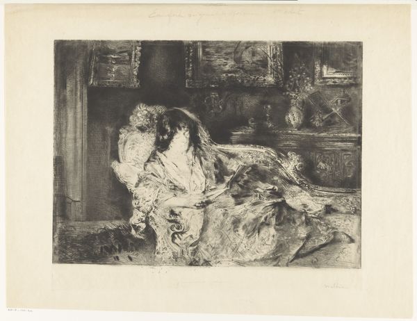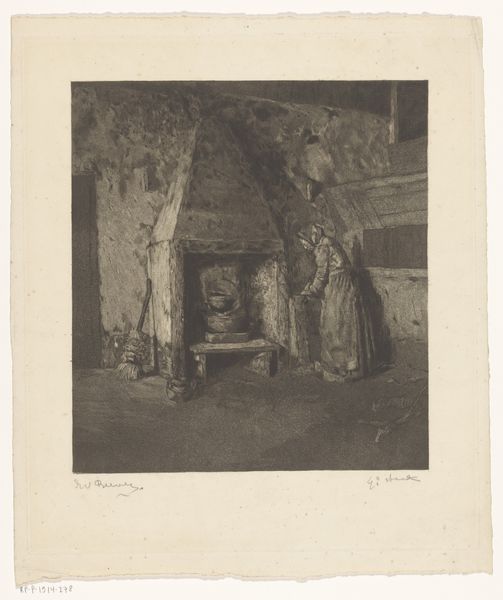 Albert Roelofs made this etching of a woman by a cradle with ink on paper. The overall impression is very soft. It’s like a memory, or a dream, hanging in the air, rather than a firm depiction of a scene. I am drawn to the way the hatching and cross-hatching creates these subtle tonal gradations. Look at how the woman’s dress seems to almost glow against the darker areas of the interior. Then notice that her hands and arms are just suggested, lightly, quickly. The details are softened, as though blurred by emotion. What is she thinking about? What does she feel? The more I look at the image, the more I think of Whistler. Both artists share a similar sensitivity and aesthetic sensibility. The beauty here is that these questions are never fully answered, and it is precisely this ambiguity that makes the image so intriguing.