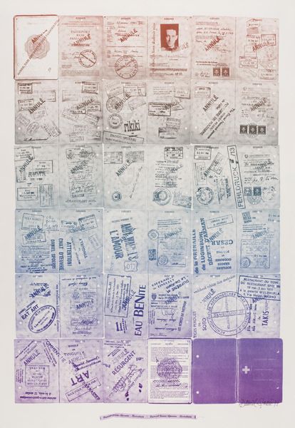 Editor: This untitled print by Eduardo Paolozzi uses screen printing to present seemingly unrelated images together. I find the overall effect quite unsettling. What symbols do you see recurring here? Curator: Notice the recurring motif of technology. Paolozzi often explored the promises and anxieties surrounding technological advancement, reflecting a post-World War II fascination with progress alongside a fear of its potential consequences. Do these images resonate with our current digital age? Editor: Absolutely. The juxtaposition of the technological with the mundane makes me think about our dependence on these systems. Curator: Precisely. By layering and repeating these symbols, Paolozzi invites us to consider the complex relationship between humanity, technology, and cultural memory. A dialogue, indeed!