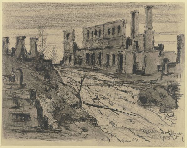 Curator: This drawing is Hermann Lismann's "San Gimignano" from 1923, held here at the Städel Museum. It's rendered in ink on paper. My immediate impression is one of striking verticality. Editor: Yes, the composition is dominated by those tower-like structures—they practically pierce the sky. The limited palette contributes to a somewhat somber, weighty atmosphere. What interests me are the physical properties of the ink itself and how that tonality shifts under different light as it interacts with the fibres in the paper. Curator: Right. The monochrome tones emphasize the monumentality of San Gimignano’s architecture. Lismann seems particularly concerned with the means by which civic identity is physically built and sustained. San Gimignano, famous for its medieval towers erected by wealthy families, stands as a testament to historical social hierarchies and competitive consumption through the labour required to raise these stone towers to the sky. Editor: I agree that there's a socio-economic element, but from a formalist standpoint, the stark contrast creates compelling patterns. I see repetition in those vertical forms of the towers versus the angles in the rooftops, set against the subtly graded sky, where the ink washes provide the light which enhances the sense of depth. And, there’s also a wonderful tactility about it; you sense the artist’s hand and process directly here. Curator: I appreciate your reading of the composition, however this speaks to more than visual enjoyment. These structures aren't merely geometric shapes but signs of dominance, of social ambition played out through architectural endeavor; who would occupy each structure, and whose power those buildings would showcase for those living at street level, for instance. Editor: Yes, both viewpoints offer something valuable. For me it’s the marriage between form and material: The fluid, unpredictable nature of ink somehow enlivens these solid, immovable structures. It injects movement where there is stability, hinting perhaps that nothing stands forever. Curator: It makes me reflect upon how art captures human struggles for distinction in the most tangible way—a story written in stone and interpreted on paper. Editor: And for me, it is a fascinating look into how something seemingly permanent, becomes ephemeral through its translation by means of another art form. A great way to conclude our analysis, I think!