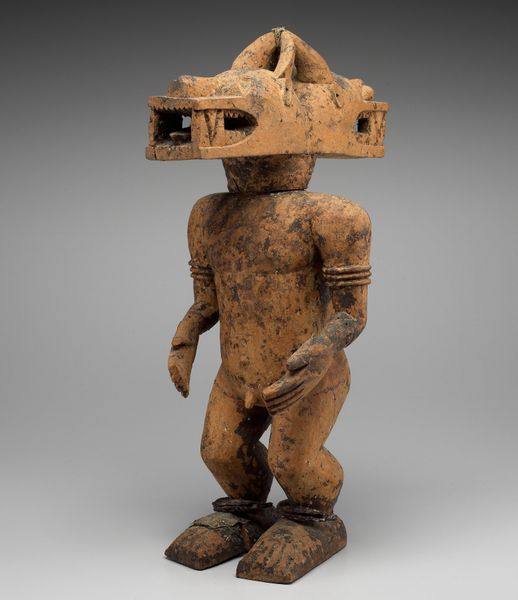 This is a ceramic ocarina, crafted by the Nazca people of ancient Peru. Look closely at the figure depicted: a musician playing a panpipe, adorned with distinctive markings and wearing a hat. These symbols, far from mere decoration, speak volumes. The act of playing music itself is a ritualistic symbol. Across cultures, music serves as a bridge to the divine, a means of invoking spirits, or celebrating life’s milestones. The panpipe specifically, with its series of pipes producing different notes, is an ancient instrument found in various forms across the globe, from the Andean highlands to ancient Greece. The musician’s face is striking, with large eyes that remind me of ancient Greek masks worn at the theatre, a powerful symbol of collective memory and subconscious expression. These features evoke a sense of heightened awareness, perhaps reflective of a shamanic state reached through music. This ocarina is more than just an instrument. It is a vessel containing cultural memory. The cyclical nature of symbols is evident here, as the act of music-making resurfaces time and again as a powerful means of human expression and spiritual connection.