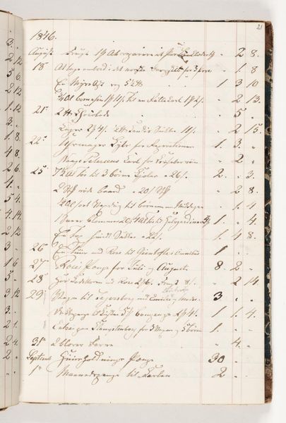 Martinus Rørbye created this page from a book of accounts in 1846, and it is held at the Statens Museum for Kunst. The ledger is rendered with precise lines and forms, illustrating the period's meticulous record-keeping. The sepia tones create a sense of antiquity, highlighting the texture of the aged paper and the density of handwritten entries. The careful script suggests a structured approach to business, yet the fading ink and tight layout also hint at the complexities of economic life. Horizontal lines divide financial entries vertically in a subtle grid, which could be interpreted as a metaphor for how accounting attempts to order everyday economic life. In closing, the materiality of this ledger page provides insight into 19th-century commerce. The act of accounting, therefore, is both an aesthetic practice and a cultural artifact, embodying values related to order, memory, and the human desire to impose structure on the world.