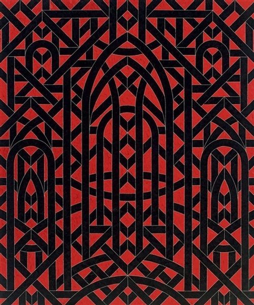 Curator: Valerie Jaudon's "Belle Fontaine," created in 1976 using acrylic paint, immediately strikes me with its interwoven geometric patterns. It's like staring into an Escher drawing but softened by the subtle color palette. What's your take? Editor: Well, it's compelling, that's for sure. All I can see is interconnectedness—these looping, overlapping forms hinting at ancient knots, perhaps a Celtic influence. The repetition soothes, it’s almost meditative, suggesting layers of history and cultural memory being woven together. Curator: Interestingly, Jaudon emerged as a notable figure within the Pattern and Decoration movement during the 1970s, advocating for the integration of decorative elements, historically deemed "feminine," into the fine arts. Editor: Ah, yes. That certainly makes the repeated patterns all the more fascinating, when we consider the historical dismissal of “women’s work”, that what women created – textiles, quilts etc. were decorative at best. The layered pattern could also speak to layered identities, personal or cultural perhaps? Curator: Absolutely. The reclamation of decoration was, in itself, a powerful political statement. The grid and pattern were Jaudon’s way of pushing back against the dominant narrative in painting and art. By embracing repetitive motifs and symmetrical arrangements, she effectively challenged the established norms of what was considered serious or important art. Editor: It certainly makes me reconsider how we frame cultural symbols. Look how this layering hints at palimpsests, with older meanings still subtly shaping newer forms. The interplay of shadows and light within the linework gives depth, evoking something old, weathered, and powerful. The effect has echoes, if you like, of cultures interweaving across generations, don't you think? Curator: Absolutely, Jaudon's patterns aren’t simply surface embellishments; they represent an underlying structural order questioning hierarchical systems within the art world itself, where the decorative and the functional have often been relegated to lower status. This piece challenges those assumptions head-on. Editor: Precisely. By using acrylic, she amplifies that conversation with tradition, as a modern method, but drawing upon traditional art that went largely unrecognized in its time. I am seeing now that what initially looks like repetition becomes more dynamic, almost transformative when you view it through the layers. Curator: Seeing "Belle Fontaine" now really allows you to appreciate the ways Jaudon's work disrupted artistic norms and offered avenues to explore the sociopolitical dimensions inherent in decoration and pattern. Editor: Indeed. It makes you consider all the historical perspectives—who made this and in what era is as important to art and culture as is the final appearance.