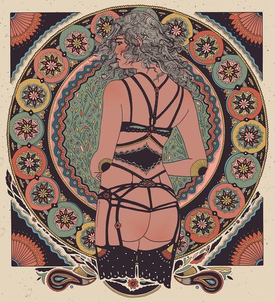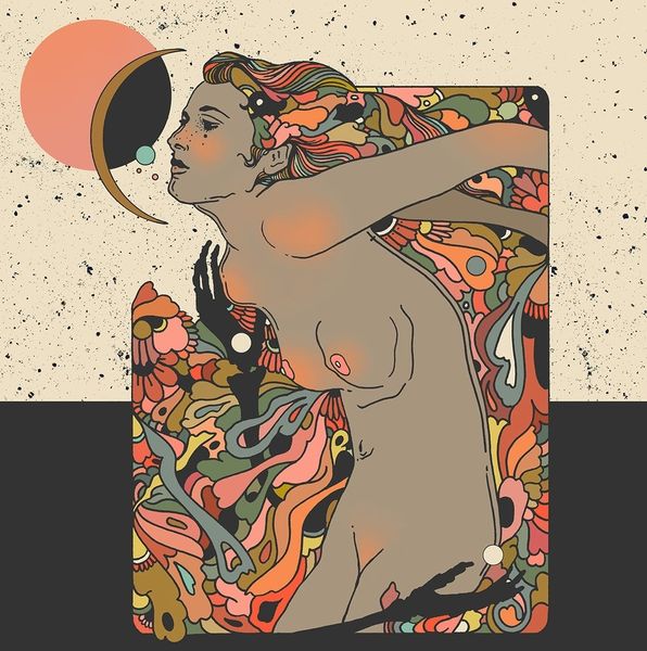 Cassidy Rae Marietta created this work, ‘Honeysuckle’, in the 20th century. The artwork presents a harmonious blend of organic and geometric elements, where the central figure of a reclining woman merges with a tapestry of floral motifs. The color palette, dominated by earthy tones of orange, green, and brown, evokes a sense of warmth and tranquility. The composition's structure can be seen through the juxtaposition of the figure's fluid contours against the structured patterns of the background. This contrast creates a tension that animates the image and invites the viewer to ponder the relationship between nature and artifice. The semiotic system here relies on the use of signs and symbols, with the honeysuckle flowers perhaps representing themes of love, nostalgia, and sweetness. Consider how the artwork destabilizes established meanings of representation, suggesting a move away from traditional portraiture towards a more abstract, symbolic form. This reflects broader artistic concerns of the 20th century, where artists experimented with new ways of thinking about space, perception, and representation. 'Honeysuckle' thus functions aesthetically and as part of a larger cultural discourse, a site of ongoing interpretation and re-interpretation.