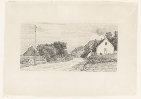 Curator: This ethereal sketch presents "Landhuis in de buurt van het Lac Léman, met op de voorgrond enige figuren" by David Alphonse de Sandoz-Rollin, crafted between 1750 and 1809 using graphite on paper. It whispers of a tranquil landscape, doesn't it? Editor: Yes, it almost vanishes before your eyes. It is remarkably ephemeral in its making. Look at how little graphite there actually is—it's more the paper asserting itself, refusing to be anything other than what it is! Curator: That delicate touch seems deliberate. It evokes a sense of Romanticism, where nature and the human presence are observed with both admiration and a hint of melancholic detachment. Editor: I see that, but it seems odd to ascribe that sensibility with so little labor expended on it. Graphite wasn't industrialized then. The quality would've been different, perhaps even harder to work with than the modern variety. Was it ease, or a commentary on fleetingness that led de Sandoz-Rollin to work so... sparely? Curator: Perhaps both? The bare minimum to capture an emotion or fleeting scene? The clothing of the figures hints at their class too. Could it be commentary? Is he inviting us to think on a socio-political reality that remains invisible until it's drawn? Editor: Precisely! It invites such speculation because we cannot see the whole picture. He is almost underlining his place as the leisurely observer with such economical material means, setting down the labor necessary. We're left to grapple with those inherent class imbalances as much as the skill used to make the piece. Curator: And that, I suppose, is what makes it so captivating. This delicate drawing pushes us to look beyond the immediate serenity and question what it represents about the artist, the subject, and the world they inhabited. Editor: Yes. For all its seeming lightness, it's dense with unacknowledged labor and unspoken politics.