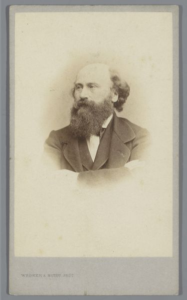 This is a portrait of Jan Derk Huibers by Anthony Grolman, made in 1867. The sitter’s facial hair, specifically his beard and mustache, immediately strike the eye. It's a symbol of masculinity and status, tracing its origins back to ancient civilizations where beards signified wisdom, virility, and power. Think of the Assyrian kings, their beards meticulously curled and lengthened, or the ancient Greek philosophers, their beards representing their intellectual prowess. The beard carries with it a legacy, a visual marker of the sitter’s identity and place in society. Interestingly, the mustache, with its upward curl, mirrors the ambition and upward mobility of the era. It is a far cry from the simple, unadorned beards of earlier times, reflecting a more complex, self-conscious identity. This subtle detail speaks to the cultural shifts and psychological undercurrents of the time. The collective memory embedded in these symbols resonates even today.