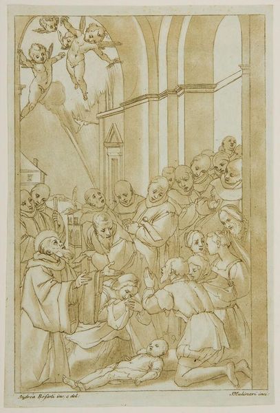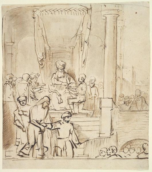 Here we see Albrecht Dürer's 'Adoration of the Magi', a delicate drawing rendered with precise pen strokes. At first glance, the eye is drawn into the heart of the scene, where the Virgin Mary and Child are centrally positioned. Dürer employs a linear style with a high level of detail, which gives the scene its detailed realism. This drawing is not just a depiction of a biblical event. It's an exploration of spatial relationships and hierarchical arrangements. Dürer uses linear perspective to create depth and to guide the viewer's eye through the composition. The delicate cross-hatching and the light and shadow bring a sense of volume. Through the architectural framework and carefully placed figures, Dürer has constructed not just a scene but a narrative deeply rooted in the cultural codes of his time. His skilled hand captures both the physical and spiritual dimensions of the Adoration.