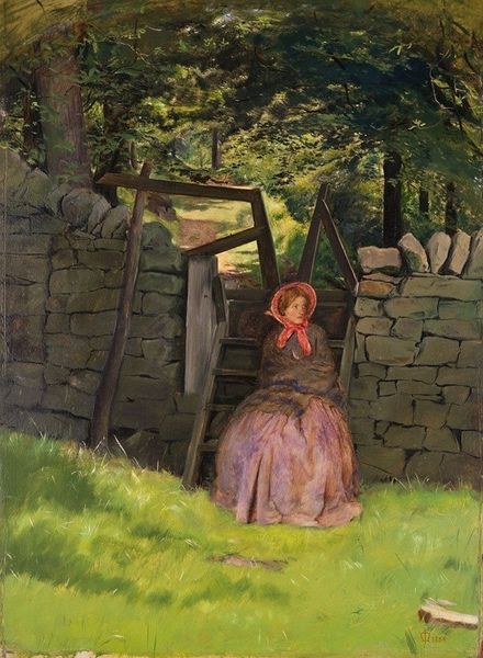 Curator: What strikes me first is the quietness, a palpable sense of stillness and repose, conveyed through soft textures. It's an interesting composition, wouldn't you agree? Editor: It certainly evokes a particular mood, even before knowing that we're observing William Henry Hunt's watercolor piece from 1840 entitled "Slumber." Let's delve into why you describe it in that manner. Curator: For me, the figure's pose, the subject resting amongst hay bales, immediately pulls from a deep well of pastoral iconography: think of countless images depicting harvest scenes or sacred manger settings. Hunt is subtly, maybe unconsciously, situating this girl within a long lineage of archetypal imagery linked to innocence and simplicity. Editor: A convincing argument, however the way Hunt handles the materiality shouldn't be overlooked. Observe the treatment of light and shadow; notice how they define forms within a limited tonal range. It seems Hunt employs visual rhymes and compositional echoes across the frame—repeating shapes and textural contrasts to foster cohesiveness and legibility. Curator: That visual patterning you mention brings to mind associations between sleep and cyclicality, or return to earth. But that dark footwear in the lower right and shed items beside her suggest a fall from innocence, possibly her economic conditions requiring her to sleep in such crude place. Editor: Ah, an interpretation layered with cultural implications, how insightful. For me, the stark, textural contrast emphasizes the figure's languid pose against the coarse hay and roughhewn structures, revealing tension between idealization and realism. It creates an aesthetically stimulating opposition. Curator: I am inclined to agree that there is an intended duality embedded, perhaps an observation on how idyllic dreams conflict with, or offer escape from, everyday conditions. That’s part of why these archetypes persist—a dream of harmony despite everything. Editor: Yes. The work demonstrates a masterful understanding of artistic vocabulary and conceptual nuance. Overall, the execution feels deeply sophisticated and subtly challenging. Curator: Thank you for lending that other perspective, seeing the structural artistry behind such moving imagery adds another layer to its powerful aura.